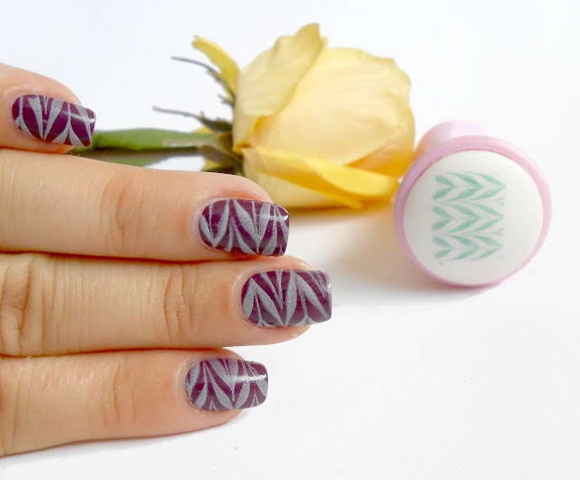 The stamper is really huge, I don't think I ever saw such a big stamper. People have different sizes of nails, so some don't get a whole design on nails with some stampers, but with this one you definitely can't go wrong. This stamper has very soft silicone, so at the beginning I had to get used to it, because I was pressing really hard on my nails, because I was afraid that the design won't transfer, but that sometimes meant that I smudged the designs, so if I press it a bit more gently on the nail it works as well. What more can I say about it than that this is a great stamper that transfers designs really nicely and it will cover up a whole nail, no matter how small or big the nail bed is. I personally am really satisfied with it. Many stamping manicures I did for 31 day nail art challenge, were made with it.