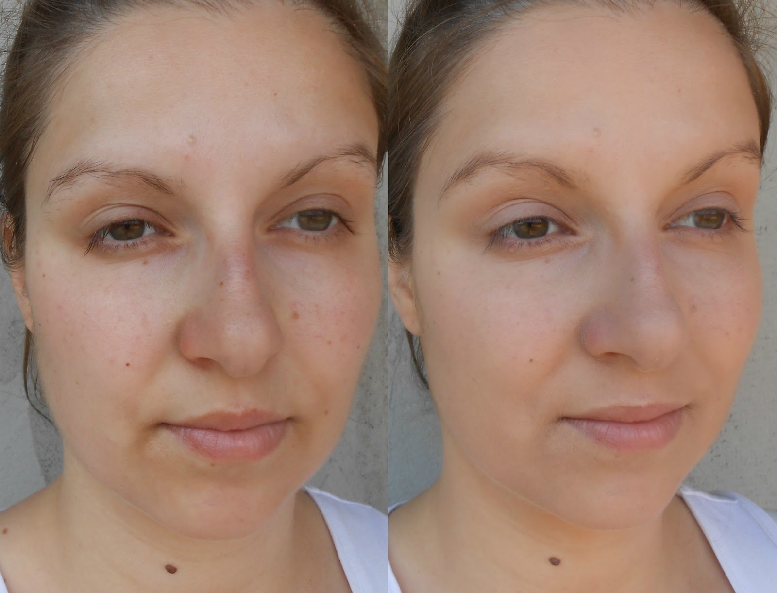 In the glass bottle packaging with a pump you get a light to medium coverage foundation with a dewy finish, that's easy to apply and blend into the skin and it doesn't emphasize dry parts on the skin. It feels very comfortable and lightweight on my face. I got the shade 28 Soft Beige, which is a bit darker yellow toned shade, but I already got some tan on my face, so for the summer, this will be a good match for my skin tone. It evens out the skin really nicely, but since it has a light coverage it won't cover bigger imperfections on the skin. When I swatched it it oxidized a bit, but on my face it doesn't become orange and it really blends nicely into the skin. It doesn't really last 24h hours as they say, but mattified with a powder it lasted around 9 hours on my skin. This is just the kind of foundation I like for my dry skin - lightweight, dewy, has light to medium coverage, evens out the skin tone and does not emphasize dry parts on my face. I just hope there are some brighter shades available by us.