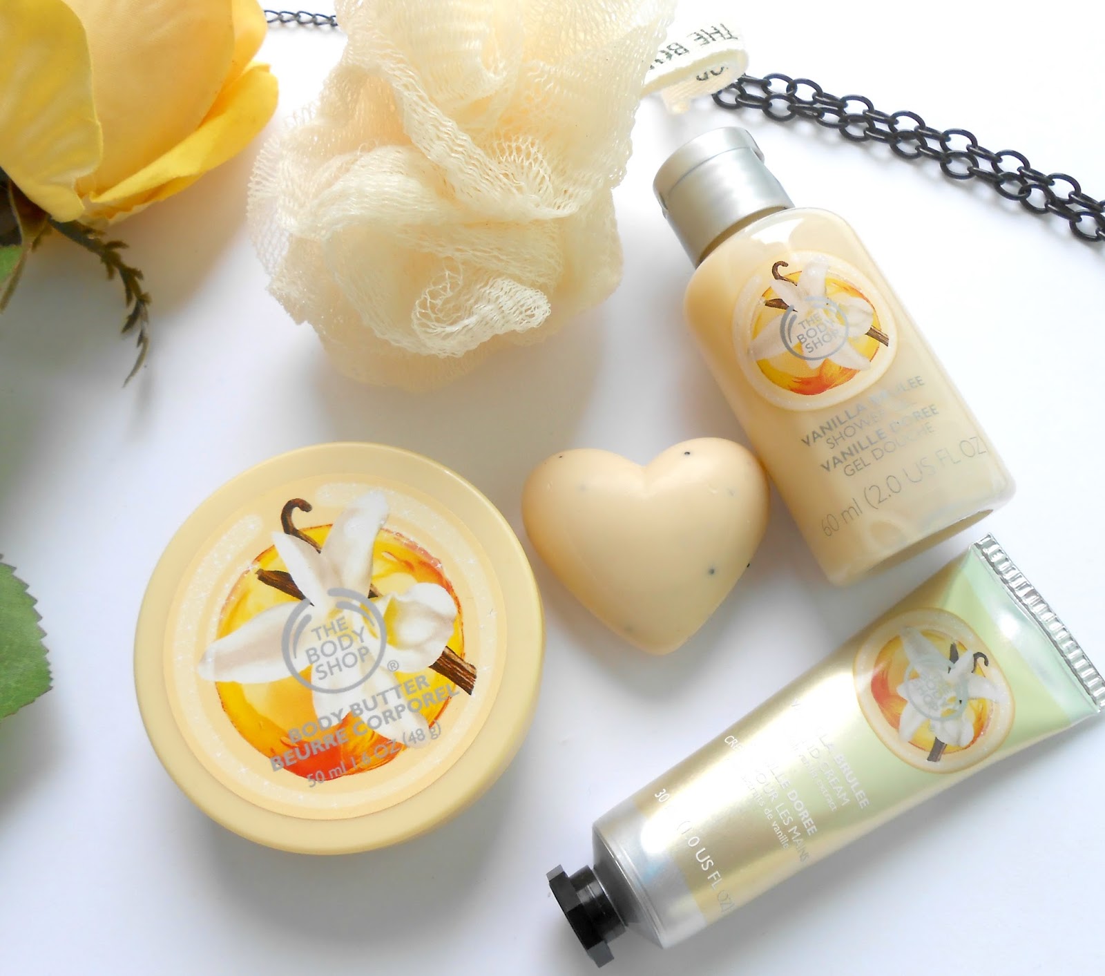 I also went to The Body Shop, but there were so many people in there that I barely had a place to check everything. But I did smell vanilla scented products and I loved them so much that I wanted to get some. They had gift packages, so I took two that contained a shower gel, a soap, a hand cream and a body butter.