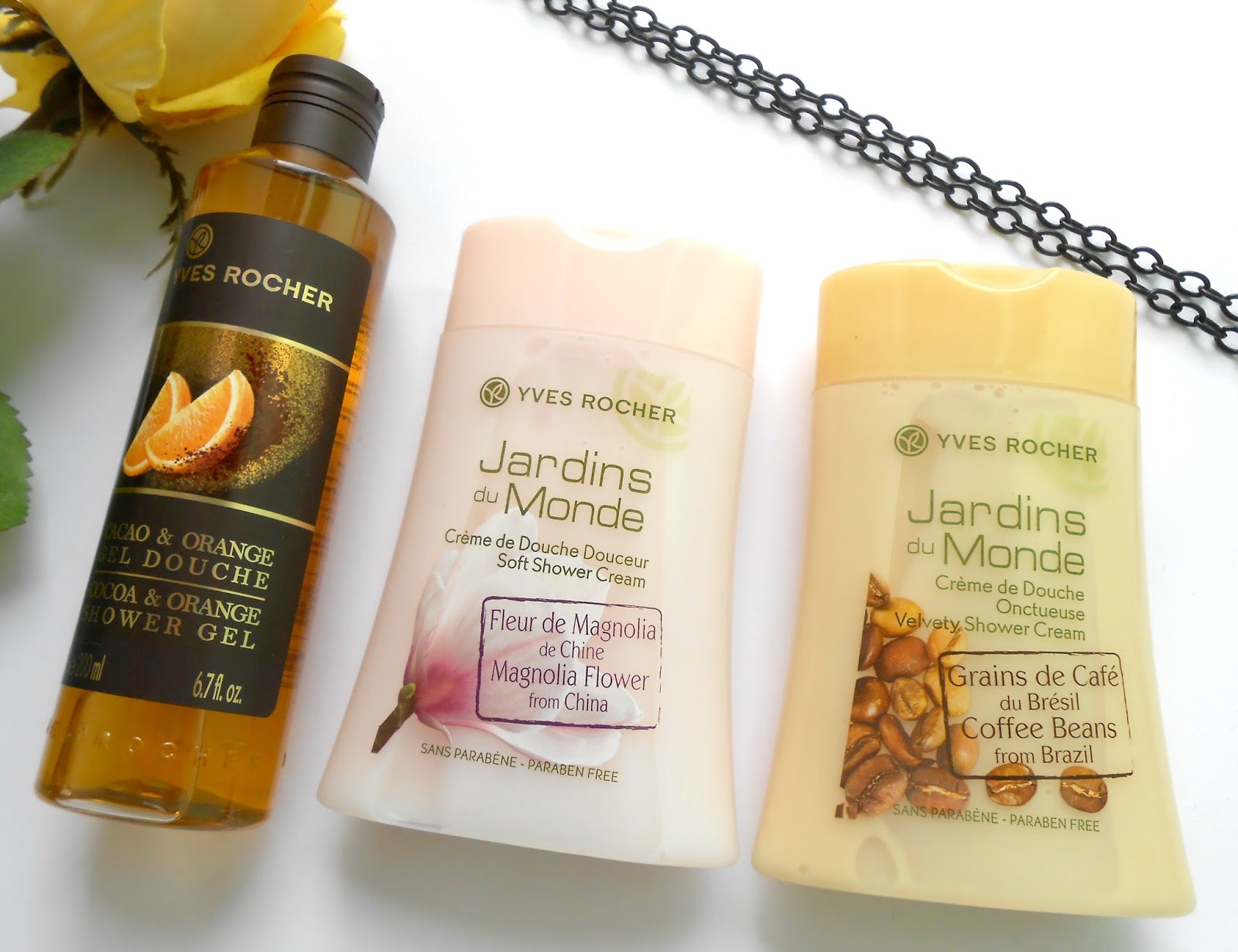 Since we only have Yves Rocher in Ljubljana and I don't go much there (I love physical stores when it comes to smelly stuff, because I have to sniff at product before buying it) I decided to go to the store in Graz. I bough few of their shower gels, because I really adore them. I got Cocoa&Orange, Magnolia Flower and Coffee Beans scents. I'm not a huge fan of coffee, but I love its scent, so I had to get this shower gel. And the Cacao&Orange gel smells literally like dark chocolate with orange flavour, amazing.